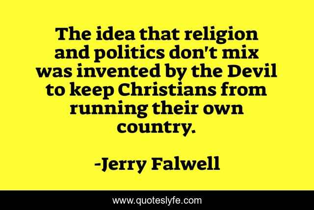 This page presents the quote "The idea that religion and politics don't mix was invented by the Devil to keep Christians from running their own country.". Author of this quote is Jerry Falwell. This quote is about politics, devil, country,.