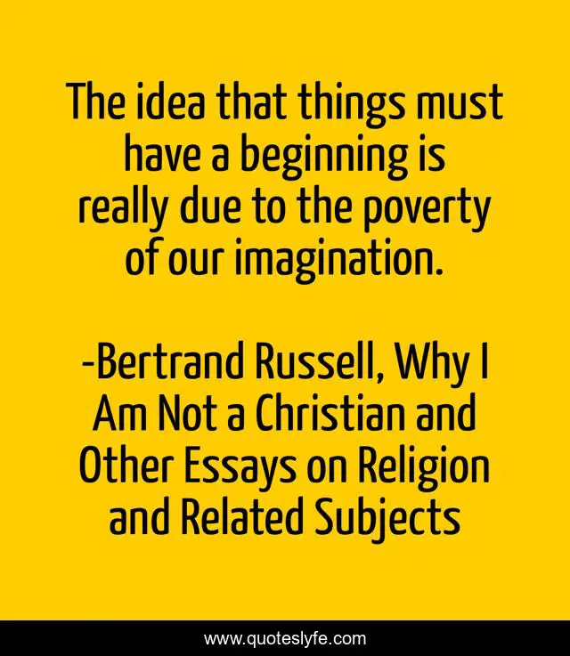 This page presents the quote "The idea that things must have a beginning is really due to the poverty of our imagination.". Author of this quote is Bertrand Russell, Why I Am Not a Christian and Other Essays on Religion and Related Subjects. .