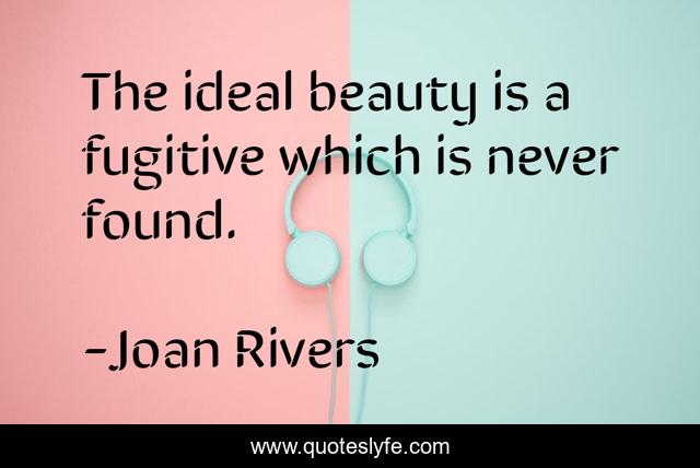 This page presents the quote "The ideal beauty is a fugitive which is never found.". Author of this quote is Joan Rivers. This quote is about found, which,.