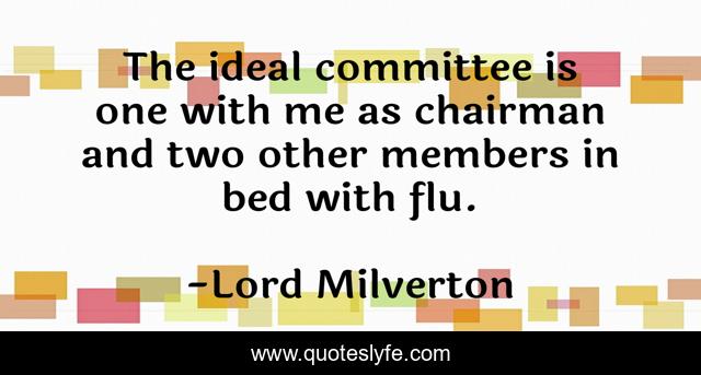 This page presents the quote "The ideal committee is one with me as chairman and two other members in bed with flu.". Author of this quote is Lord Milverton. This quote is about clubs, institutions,.