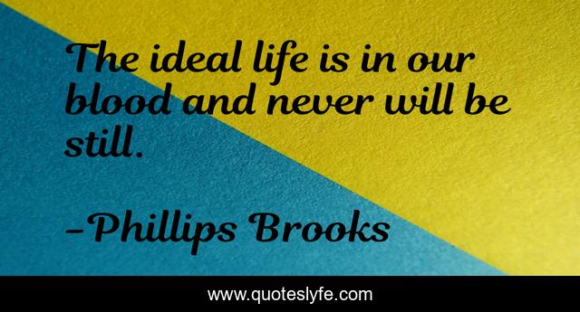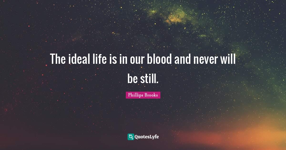 This page presents the quote "The ideal life is in our blood and never will be still.". Author of this quote is Phillips Brooks. This quote is about life, blood,.