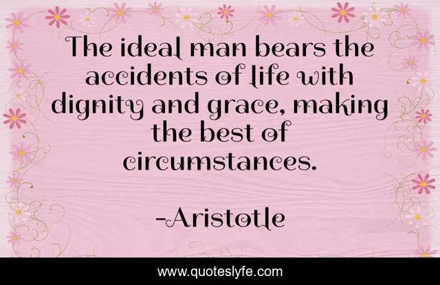 This page presents the quote "The ideal man bears the accidents of life with dignity and grace, making the best of circumstances.". Author of this quote is Aristotle. This quote is about life, grace, man,.