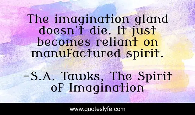 "S.A. Tawks, The Spirit of Imagination Quotes." Quoteslyfe.com, 2025. Fri. 05 Dec. 2025. <https://www.quoteslyfe.com/quote/The-imagination-gland-doesn-t-die-It-126079>.
