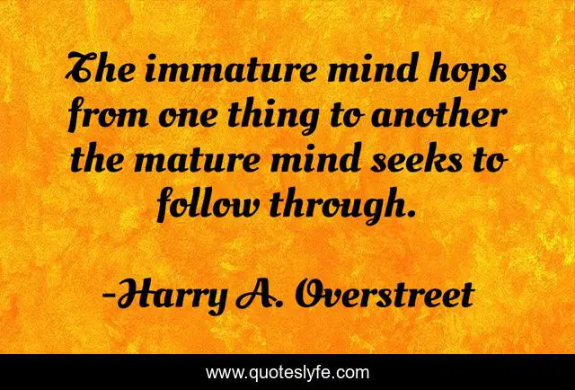 This page presents the quote "The immature mind hops from one thing to another the mature mind seeks to follow through.". Author of this quote is Harry A. Overstreet. .