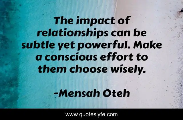 "Mensah Oteh Quotes." Quoteslyfe.com, 2025. Sat. 06 Dec. 2025. <https://www.quoteslyfe.com/quote/The-impact-of-relationships-can-be-subtle-57928>.