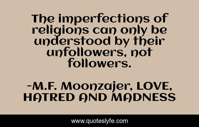 "M.F. Moonzajer, LOVE, HATRED AND MADNESS Quotes." Quoteslyfe.com, 2025. Sat. 06 Dec. 2025. <https://www.quoteslyfe.com/quote/The-imperfections-of-religions-can-only-be-175938>.
