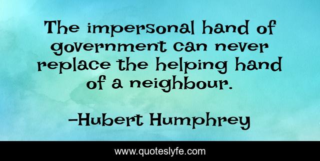 This page presents the quote "The impersonal hand of government can never replace the helping hand of a neighbour.". Author of this quote is Hubert Humphrey. This quote is about rule, government,.