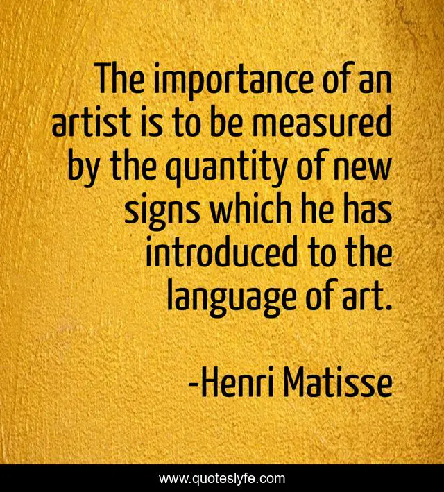 This page presents the quote "The importance of an artist is to be measured by the quantity of new signs which he has introduced to the language of art.". Author of this quote is Henri Matisse. This quote is about language-of-art, artist, signs,.
