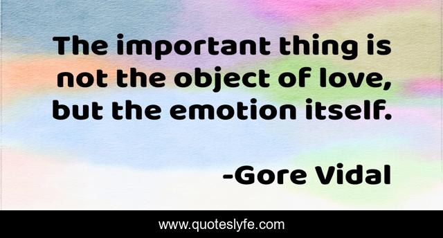 This page presents the quote "The important thing is not the object of love, but the emotion itself.". Author of this quote is Gore Vidal. This quote is about emotion, enthusiasm, love, inspirational, affection,.