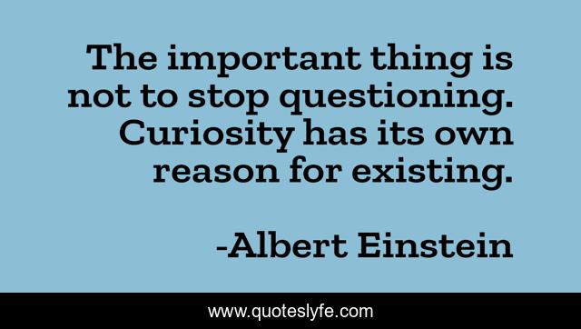 This page presents the quote "The important thing is not to stop questioning. Curiosity has its own reason for existing.". Author of this quote is Albert Einstein. This quote is about philosophy, curiosity, wonder,.