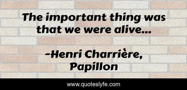 This page presents the quote "The important thing was that we were alive...". Author of this quote is Henri Charrière, Papillon. .