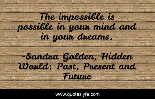 This page presents the quote "The impossible is possible in your mind and in your dreams.". Author of this quote is Sandra Golden, Hidden World: Past, Present and Future. .