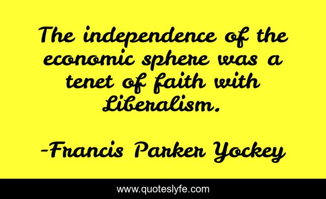This page presents the quote "The independence of the economic sphere was a tenet of faith with Liberalism.". Author of this quote is Francis Parker Yockey. This quote is about faith, economic, liberalism,.