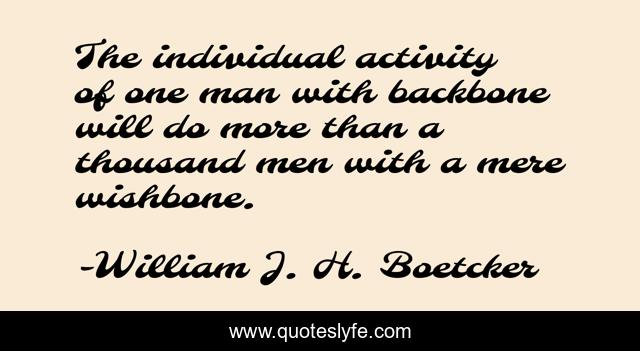 This page presents the quote "The individual activity of one man with backbone will do more than a thousand men with a mere wishbone.". Author of this quote is William J. H. Boetcker. This quote is about going, getting,.