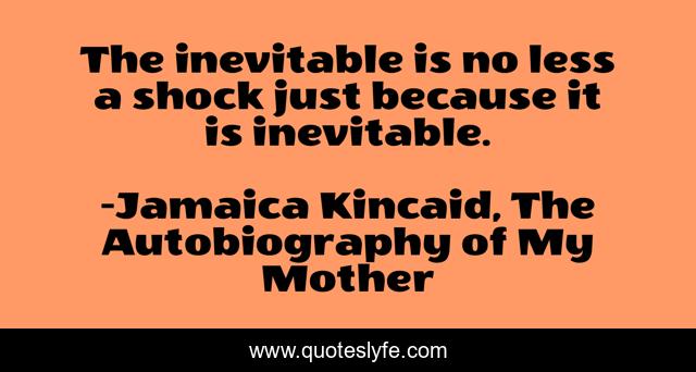 This page presents the quote "The inevitable is no less a shock just because it is inevitable.". Author of this quote is Jamaica Kincaid, The Autobiography of My Mother. This quote is about life, fate, inevitability,.