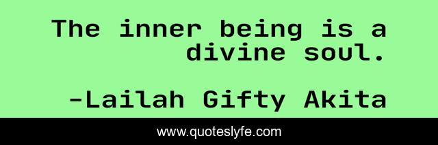 This page presents the quote "The inner being is a divine soul.". Author of this quote is Lailah Gifty Akita. This quote is about motivation, soul, divine-grace,.