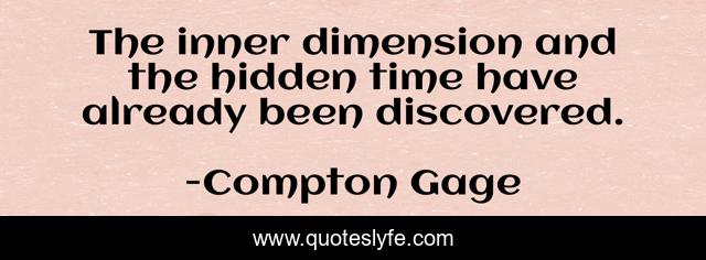"Compton Gage Quotes." Quoteslyfe.com, 2025. Fri. 05 Dec. 2025. <https://www.quoteslyfe.com/quote/The-inner-dimension-and-the-hidden-time-20424>.