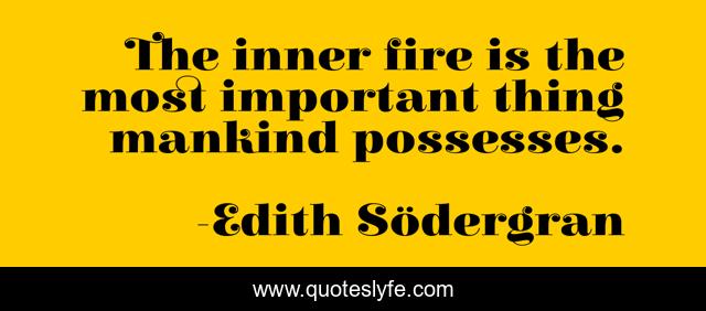 This page presents the quote "The inner fire is the most important thing mankind possesses.". Author of this quote is Edith Södergran. This quote is about philosophy, creativity, vitality, inspiration,.