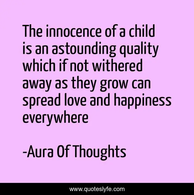 This page presents the quote "The innocence of a child is an astounding quality which if not withered away as they grow can spread love and happiness everywhere". Author of this quote is Aura Of Thoughts. This quote is about parenting, learning,.