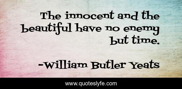 This page presents the quote "The innocent and the beautiful have no enemy but time.". Author of this quote is William Butler Yeats. This quote is about beautiful, enemy, innocent,.