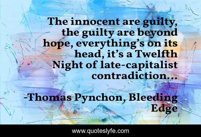 "Thomas Pynchon, Bleeding Edge Quotes." Quoteslyfe.com, 2025. Fri. 05 Dec. 2025. <https://www.quoteslyfe.com/quote/The-innocent-are-guilty-the-guilty-are-204924>.