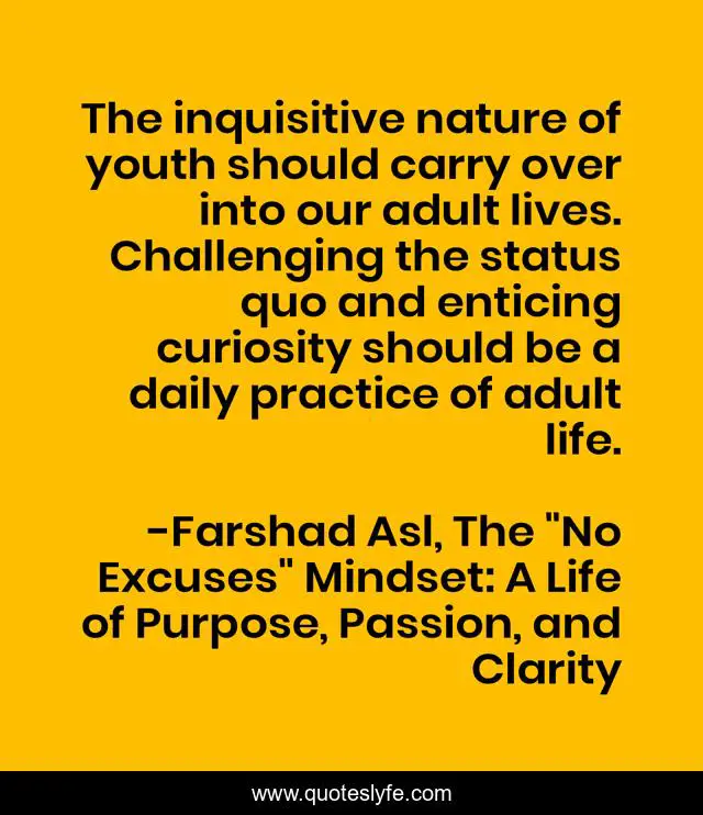 "Farshad Asl, The "No Excuses" Mindset: A Life of Purpose, Passion, and Clarity Quotes." Quoteslyfe.com, 2025. Tue. 09 Dec. 2025. <https://www.quoteslyfe.com/quote/The-inquisitive-nature-of-youth-should-carry-184278>.