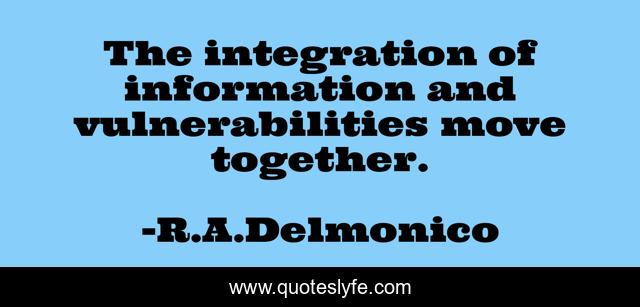 This page presents the quote "The integration of information and vulnerabilities move together.". Author of this quote is R.A.Delmonico. This quote is about information, vulnerability,.