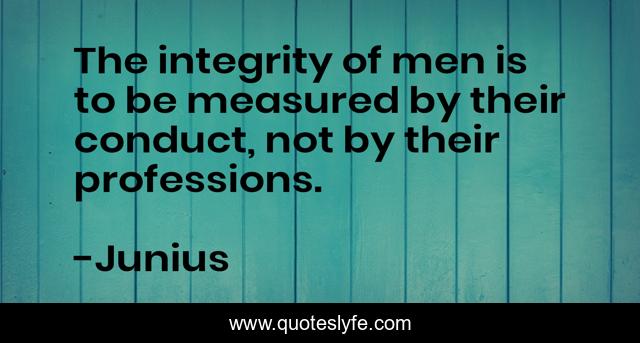 This page presents the quote "The integrity of men is to be measured by their conduct, not by their professions.". Author of this quote is Junius. This quote is about integrity, measured, conduct,.