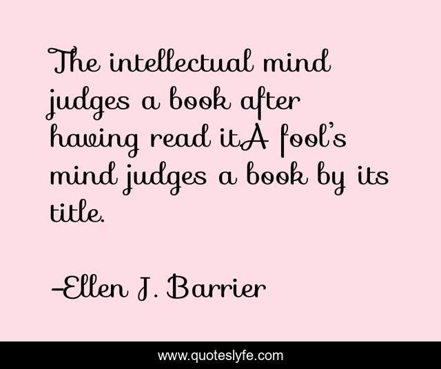 This page presents the quote "The intellectual mind judges a book after having read it.A fool’s mind judges a book by its title.". Author of this quote is Ellen J. Barrier. This quote is about fool, judges, title, mind, intellectual, book, judge,.