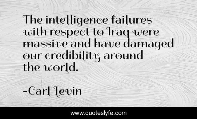 This page presents the quote "The intelligence failures with respect to Iraq were massive and have damaged our credibility around the world.". Author of this quote is Carl Levin. This quote is about respect, world, credibility,.