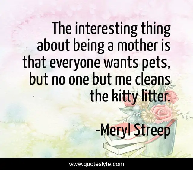 This page presents the quote "The interesting thing about being a mother is that everyone wants pets, but no one but me cleans the kitty litter.". Author of this quote is Meryl Streep. This quote is about me, interesting, mother,.