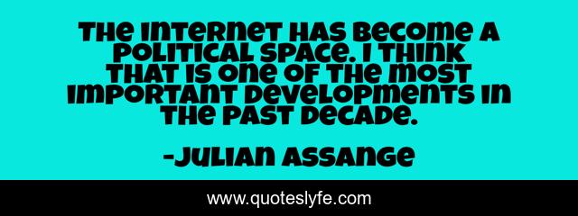 This page presents the quote "The internet has become a political space. I think that is one of the most important developments in the past decade.". Author of this quote is Julian Assange. This quote is about politics, internet, space,.