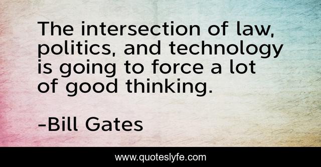 This page presents the quote "The intersection of law, politics, and technology is going to force a lot of good thinking.". Author of this quote is Bill Gates. This quote is about good, technology, law,.
