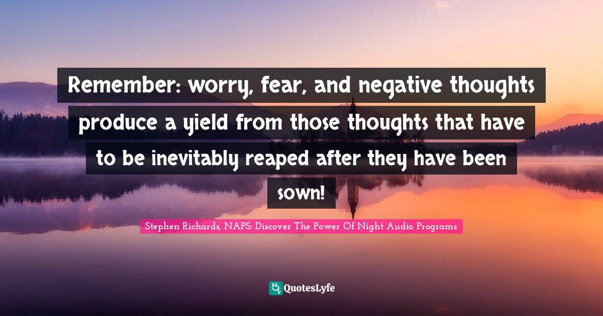 Remember: worry, fear, and negative thoughts produce a yield from those thoughts that have to be inevitably reaped after they have been sown!