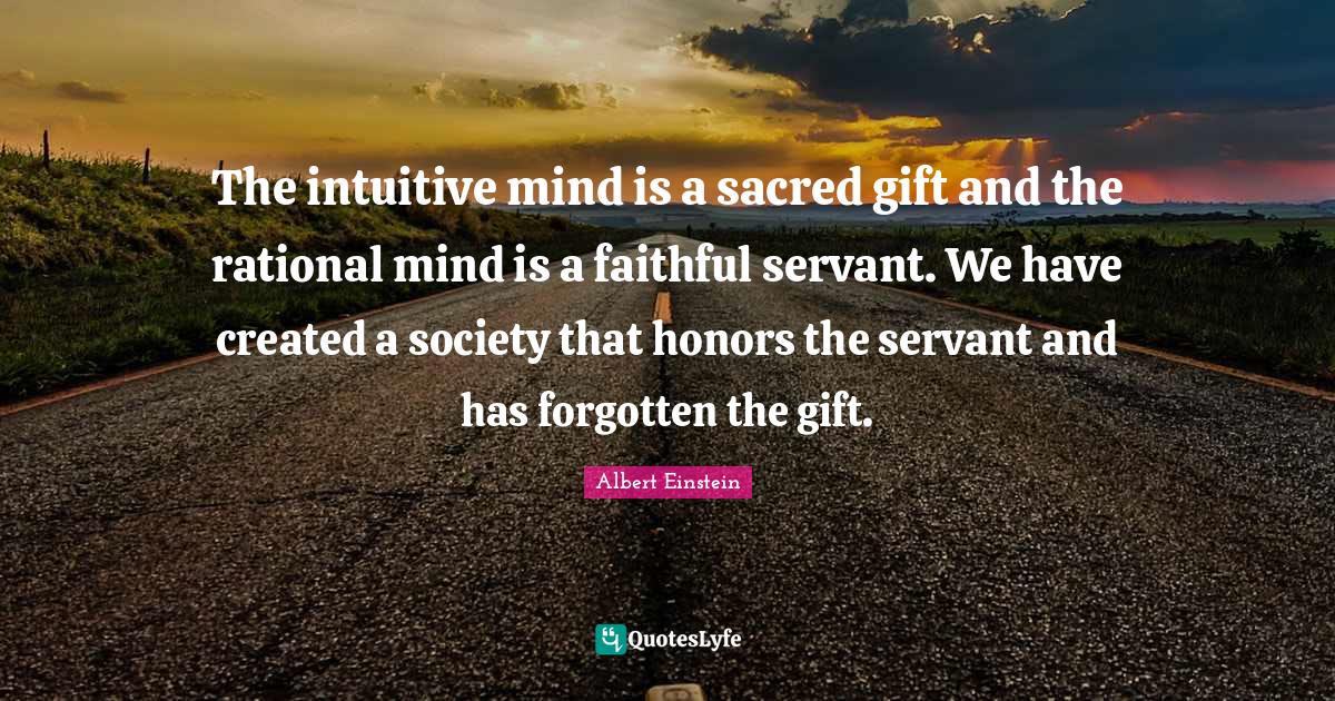 "Albert Einstein Quotes." Quoteslyfe.com, 2026. Wed. 14 Jan. 2026. <https://www.quoteslyfe.com/quote/The-intuitive-mind-is-a-sacred-gift-347708>.
