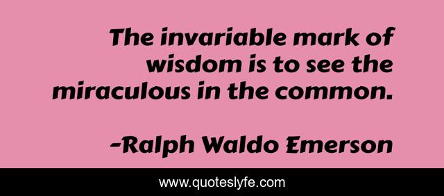 This page presents the quote "The invariable mark of wisdom is to see the miraculous in the common.". Author of this quote is Ralph Waldo Emerson. This quote is about appreciation, wisdom, wonder,.