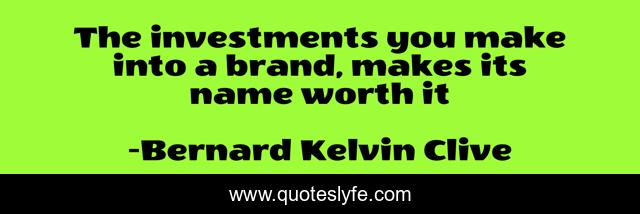 This page presents the quote "The investments you make into a brand, makes its name worth it". Author of this quote is Bernard Kelvin Clive. This quote is about branding, brand-names, brand-equity, personal-branding,.