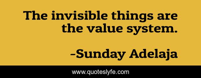 This page presents the quote "The invisible things are the value system.". Author of this quote is Sunday Adelaja. This quote is about invisible-things, value-system, values, invisibility,.