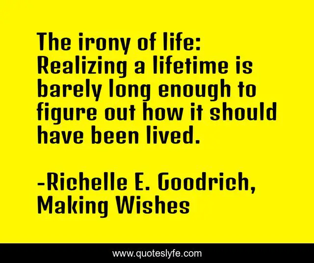 "Richelle E. Goodrich, Making Wishes Quotes." Quoteslyfe.com, 2025. Sun. 07 Dec. 2025. <https://www.quoteslyfe.com/quote/The-irony-of-life-Realizing-a-lifetime-117437>.