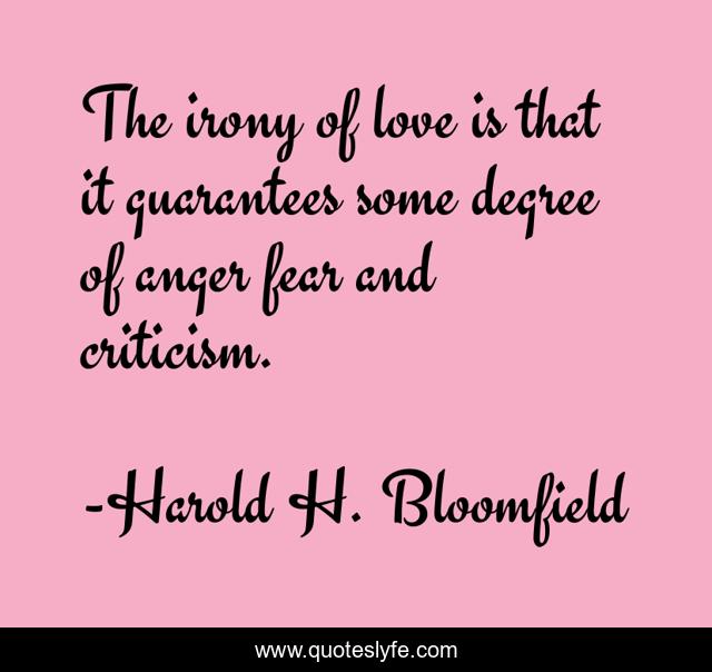 This page presents the quote "The irony of love is that it guarantees some degree of anger fear and criticism.". Author of this quote is Harold H. Bloomfield. This quote is about love, affection,.