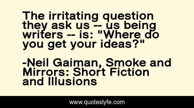 This page presents the quote "The irritating question they ask us -- us being writers -- is: "Where do you get your ideas?"". Author of this quote is Neil Gaiman, Smoke and Mirrors: Short Fiction and Illusions. This quote is about confluence, creative-process, books, ideas, writing,.