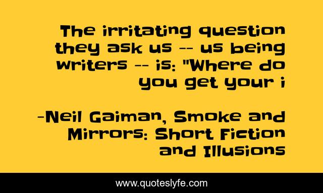 This page presents the quote "The irritating question they ask us -- us being writers -- is: "Where do you get your i". Author of this quote is Neil Gaiman, Smoke and Mirrors: Short Fiction and Illusions. This quote is about confluence, creative-process, books, ideas, writing,.