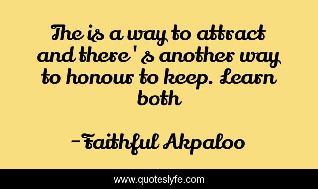 This page presents the quote "The is a way to attract and there's another way to honour to keep. Learn both". Author of this quote is Faithful Akpaloo. This quote is about love, relationship, affection,.