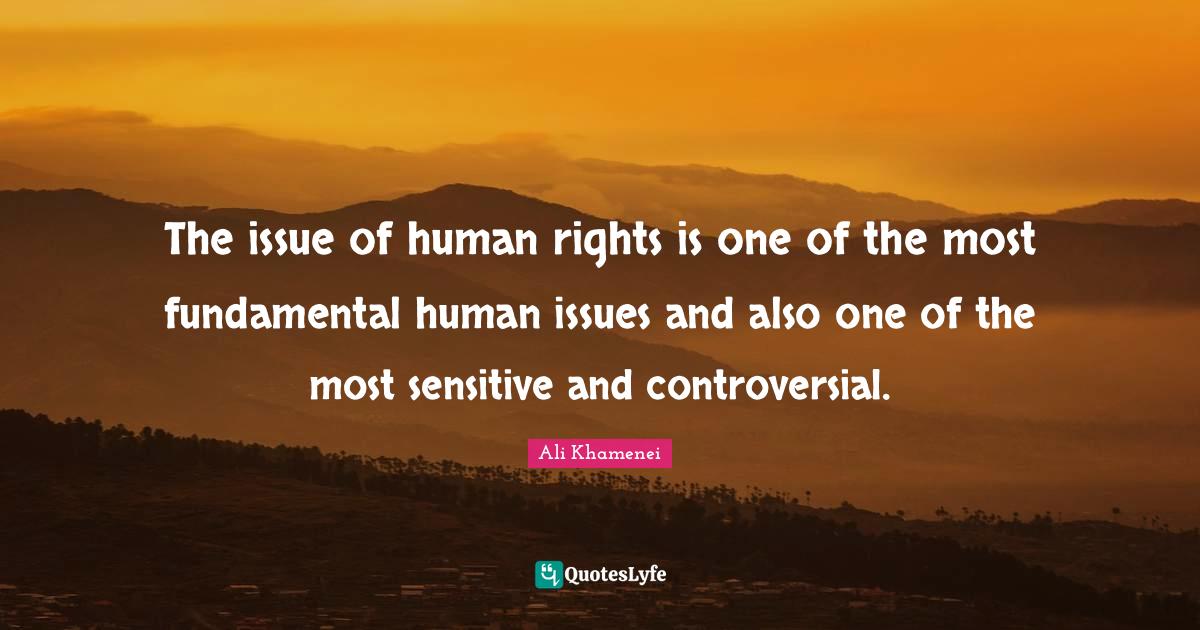 This page presents the quote "The issue of human rights is one of the most fundamental human issues and also one of the most sensitive and controversial.". Author of this quote is Ali Khamenei. This quote is about controversial, human rights, rights, issues, fundamentals, sensitive,.