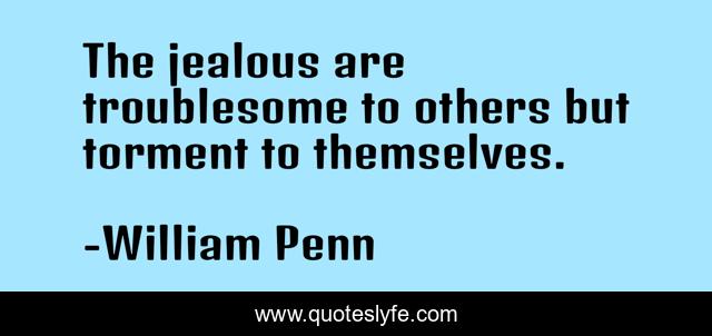 This page presents the quote "The jealous are troublesome to others but torment to themselves.". Author of this quote is William Penn. .