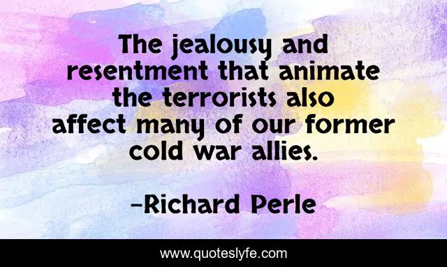 This page presents the quote "The jealousy and resentment that animate the terrorists also affect many of our former cold war allies.". Author of this quote is Richard Perle. This quote is about cold war, war, resentment,.