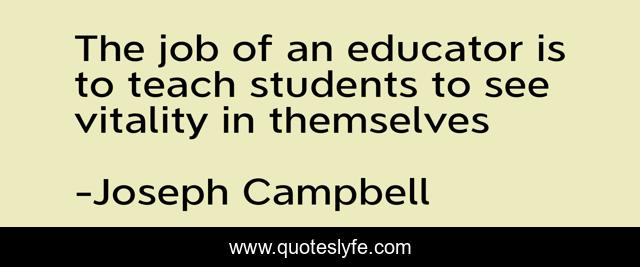 This page presents the quote "The job of an educator is to teach students to see vitality in themselves". Author of this quote is Joseph Campbell. This quote is about teaching, coaching, education, inspiring,.