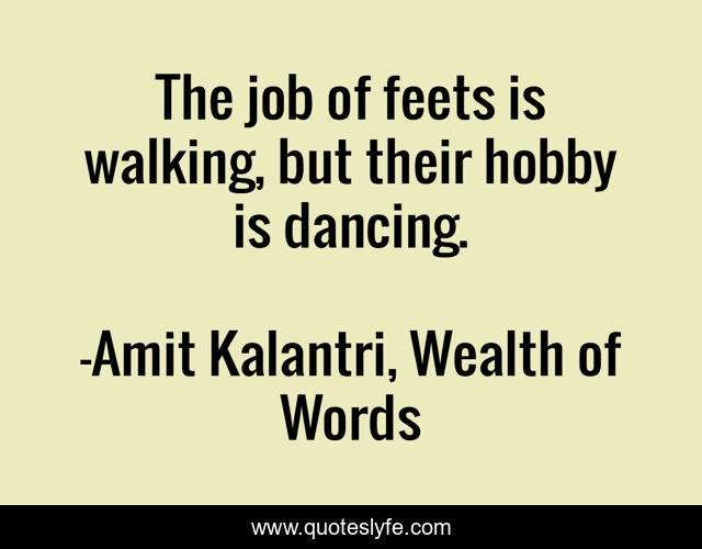 "Amit Kalantri, Wealth of Words Quotes." Quoteslyfe.com, 2025. Mon. 08 Dec. 2025. <https://www.quoteslyfe.com/quote/The-job-of-feets-is-walking-but-22880>.