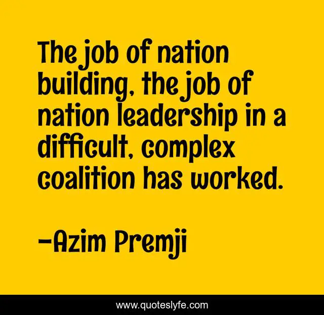 This page presents the quote "The job of nation building, the job of nation leadership in a difficult, complex coalition has worked.". Author of this quote is Azim Premji. This quote is about building, job, nation,.
