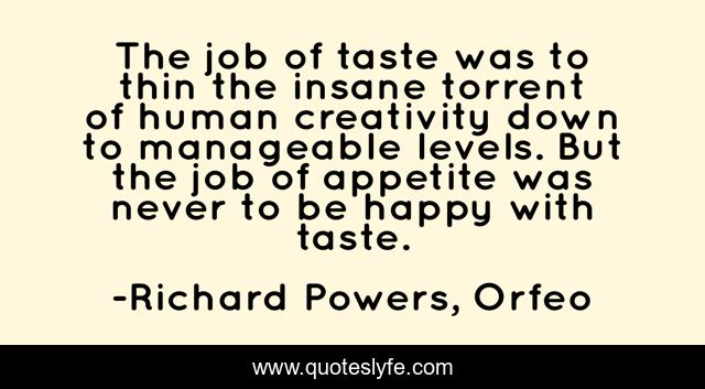 "Richard Powers, Orfeo Quotes." Quoteslyfe.com, 2025. Sat. 06 Dec. 2025. <https://www.quoteslyfe.com/quote/The-job-of-taste-was-to-thin-108591>.